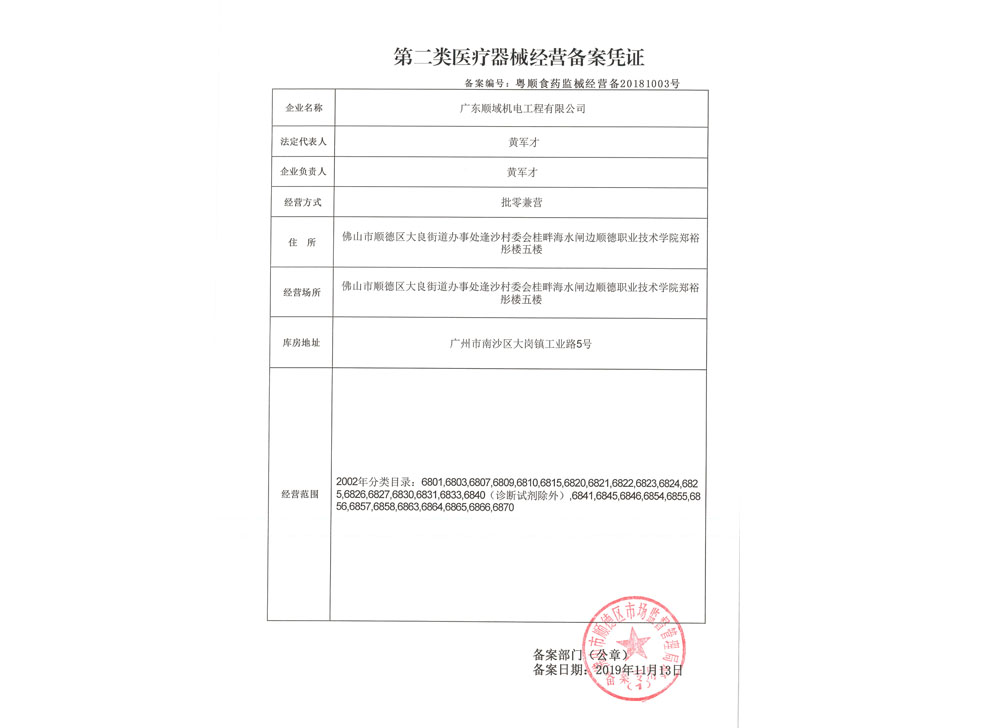 第二类医疗器械经营备案凭证