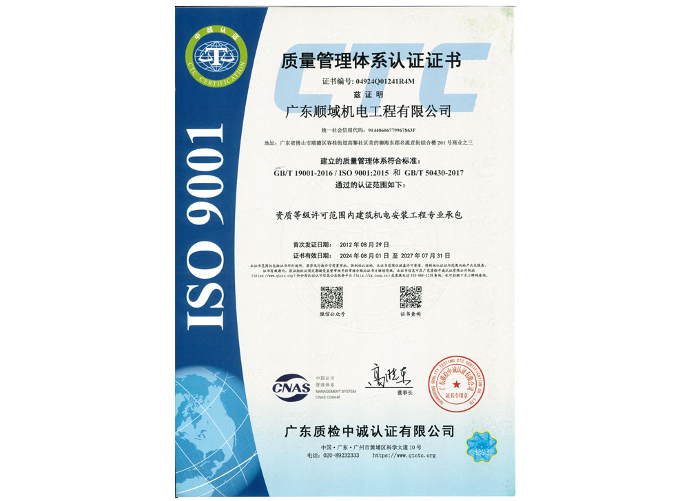 质量管理体系认证证书