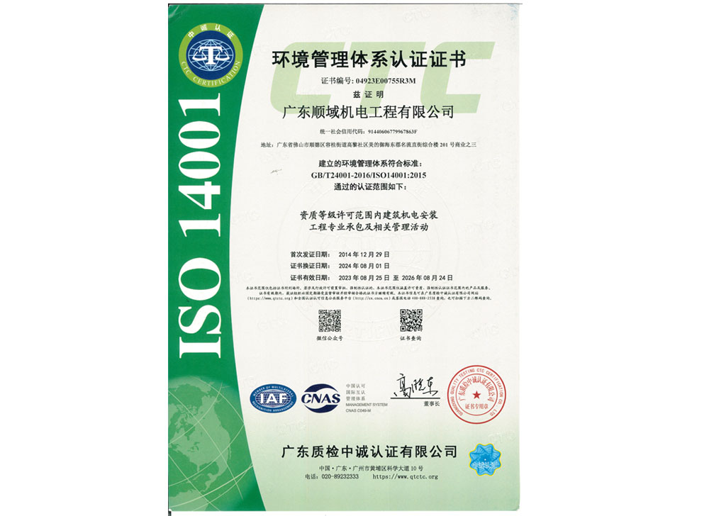 环境管理体系认证证书