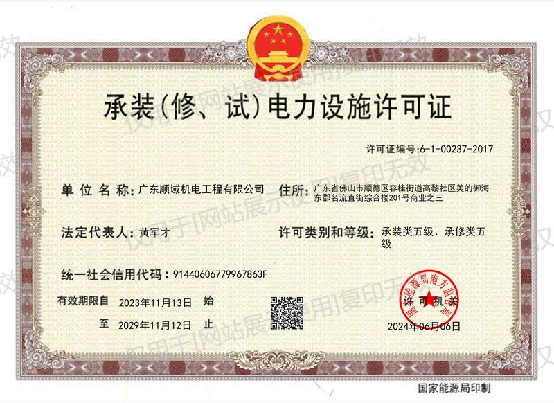 承装(修、试)电力设施许可证