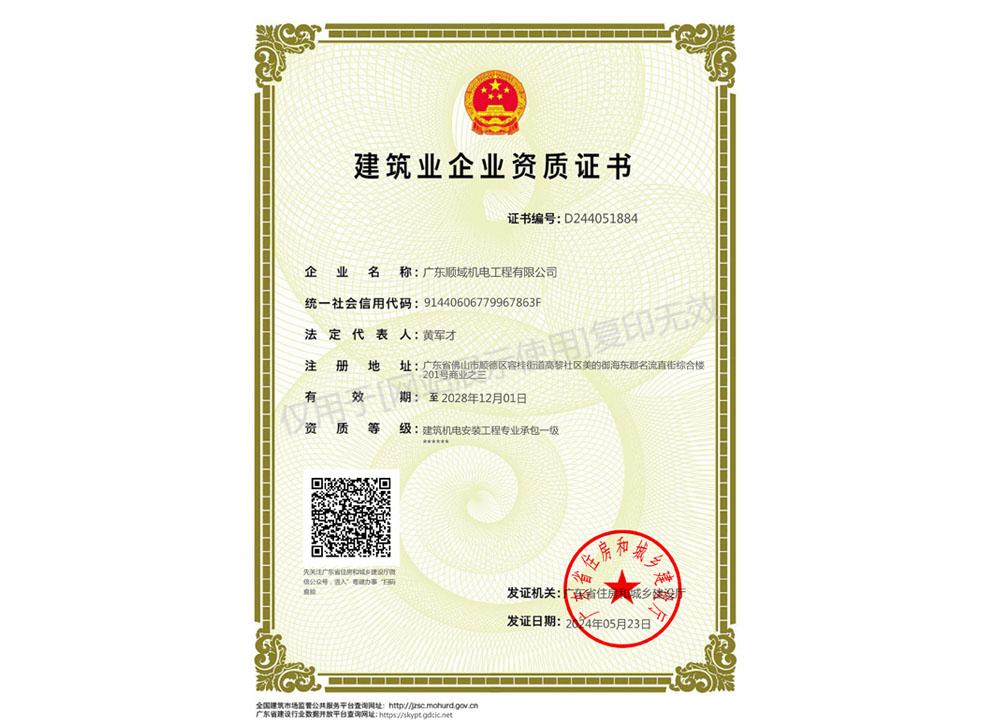 建筑机电安装工程专业承包一级(新)